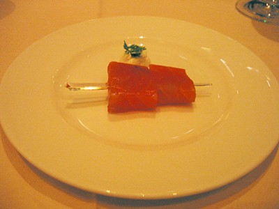 スモークサーモンとクリームチーズですが、チーズ臭くなく、燻製の具合もほどよく美味しかったです。