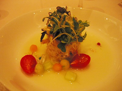 カニのほぐし身のかたまりと野菜にフルーツ。カニ・エビ好きの我が家にとっては、サラダというよりもメインですねぇ〜(笑)非常にさわやかな味の一皿です。が、逆に言うと、あまり記憶に残らない味付けとも言えなくはないですね(汗)