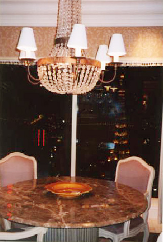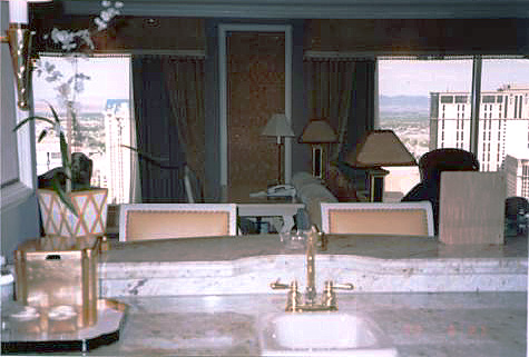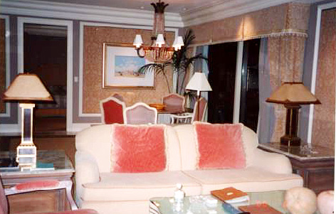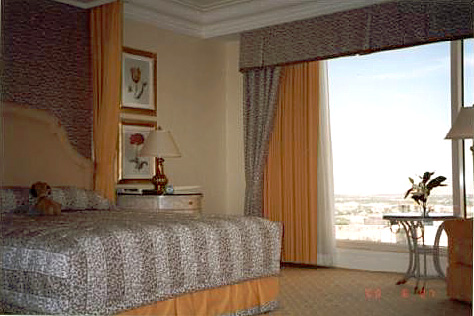ペントハウスは34階でした。とても眺めが良かったです。 ジャグジー、スチームサウナ、トイレが3つ&ウォシュレット、 大型TV,こがたTV2つ、冷蔵庫、バー、素敵なバスローブ、 カーテンはボタンで開き、などなど、すごい部屋でした。 (7/1 しんしんさんの掲示板への書き込みから) |